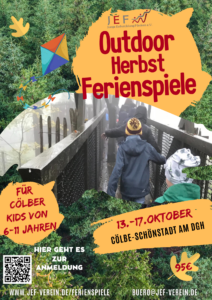 Unsere Herbstferienspiele finden dieses Jahr zum 1.Mal in Schönstadt am DGH statt. Wir freuen uns auf jede Menge Outdoorspass und Abenteuer!