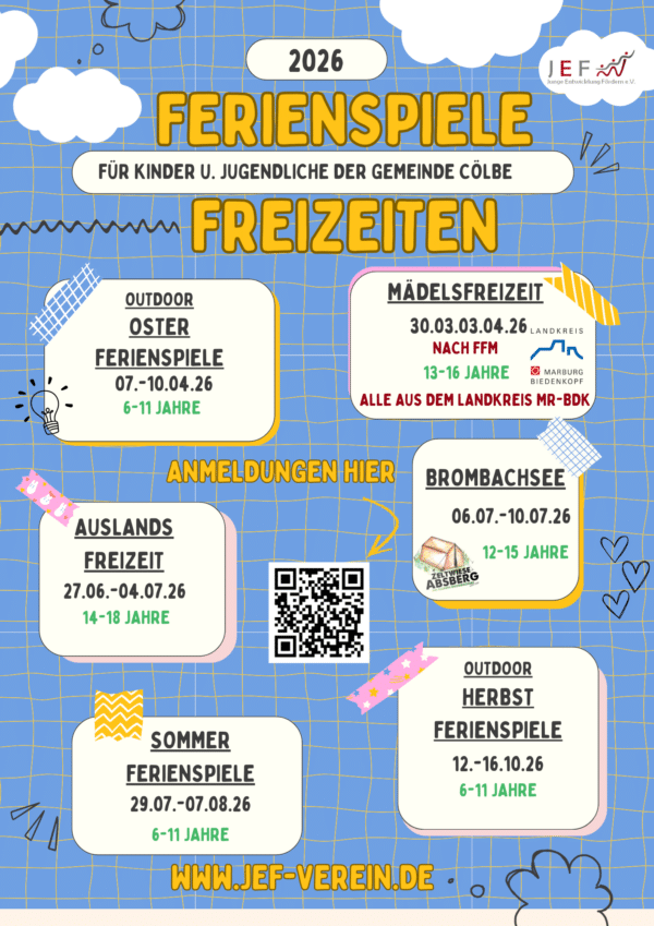 Unsere Ferienspiele richten sich an alle Kids aus der Gemeinde Cölbe im Alter von 6-11 Jahren (Grundschulalter). Wir wollen viel Zeit draußen verbringen, Spielen, basteln, toben und gemeinsam eine gute Zeit verbringen.