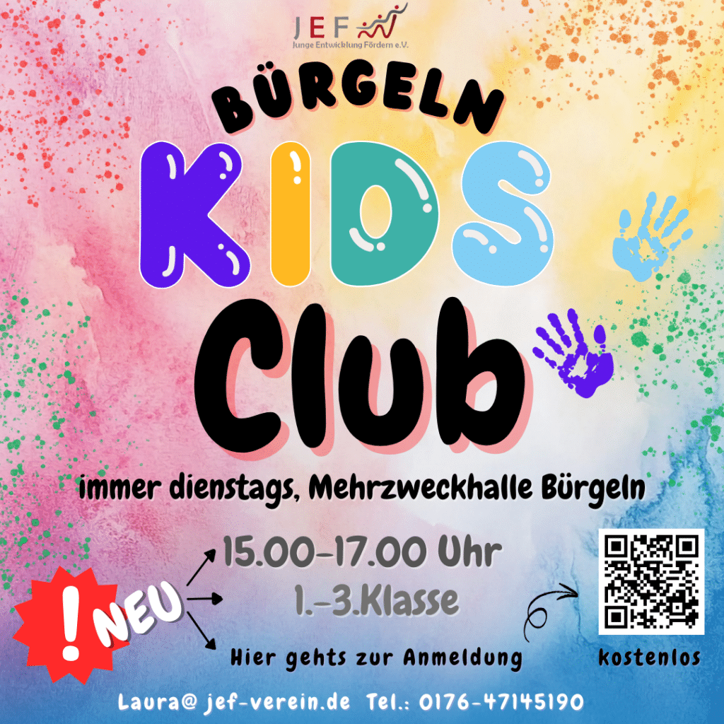 Du gehts in die 1., 2. oder 3.Klasse? Dann wäre vielleicht der Kidsclub in Bürgeln etwas für Dich. Wir treffen uns immer dienstags im Jugendraum in Bürgeln bei der Mehrzweckhalle. Wir freuen uns über jede:n, die/der Lust hat vorbeizuschauen. Über den unterstehenden Link kommt ihr zur Anmeldung.
