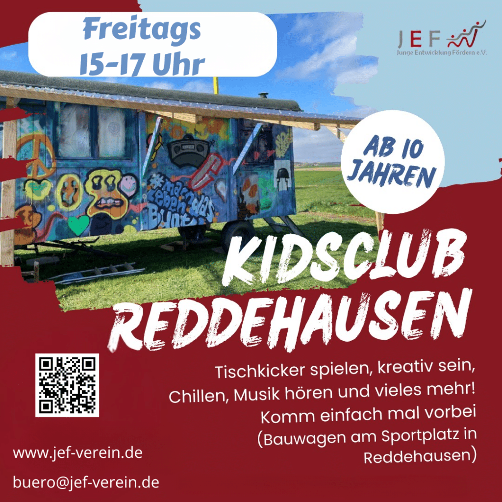 Du bist 10 Jahre oder älter? Dann wäre vielleicht der Kidsclub in Reddehausen etwas für Dich. Wir treffen wir uns immer freitags im Bauwagen am Sportplatz und verbringen eine coole Zeit miteinander. Wir freuen uns über jede:n, die/der Lust hat vorbeizuschauen. Das Angebot von JEF ist kostenlos, eine Anmeldung ist nicht erforderlich.